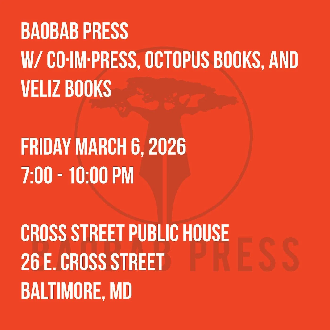 Agency 3/Baobab Press reading, Baltimore, MD, March 6, 2026